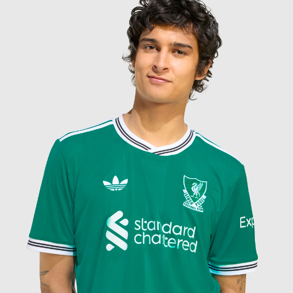 Soutiens les champions en titre de la Premier League alors qu’ils défendent leur titre et visent la victoire dans les compétitions européennes avec le Maillot Third adidas Originals Liverpool 25/26 – Vert Mer, un maillot confortable riche en fierté liverpuldienne.